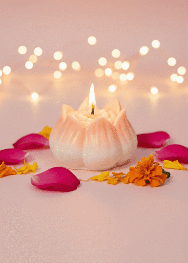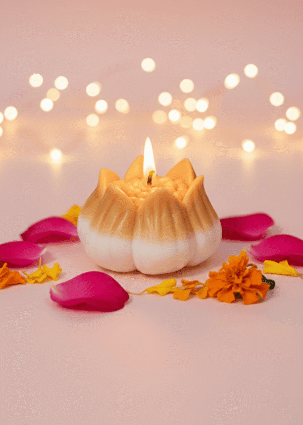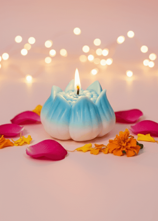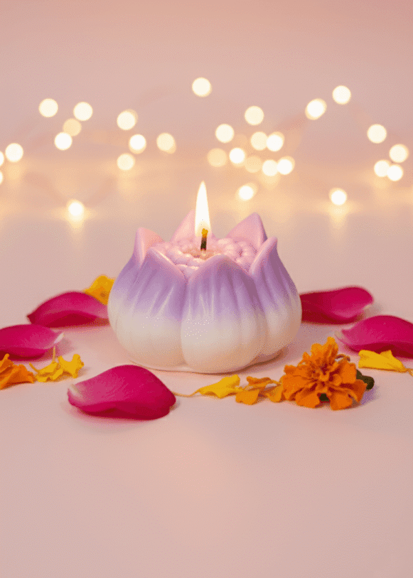 A tribute to the most sacred flower in our heritage, the Blooming Lotus candle is a symbol of absolute purity, beauty, and spiritual awakening. In our traditions, the journey of the Lotus (Kamal)—rising pristine from the worldly waters to greet the light—is a metaphor for the soul’s journey toward enlightenment. This exquisite candle captures the perfect moment of that bloom, a divine offering designed to cast a serene, blessed, and deeply peaceful glow.