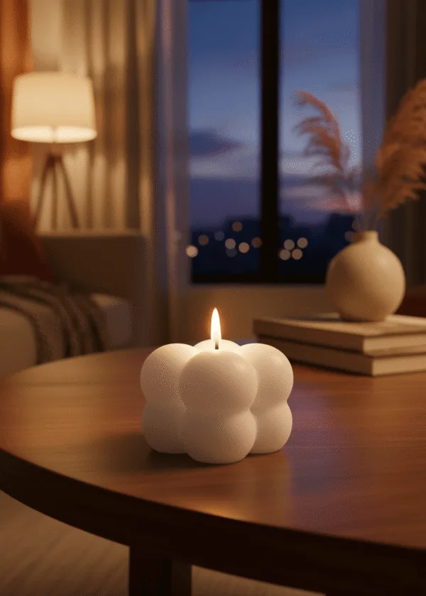 - Craftsmanship: Features a unique and captivating composition of interconnected spheres, creating a visually stunning 3D bubble cube. Each candle is a minimalist sculpture, meticulously crafted by our artisans to be a centerpiece of contemporary style and a symbol of unity.
