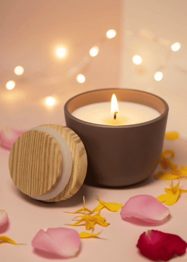 - Material: Poured with 100% natural, biodegradable soy wax for a clean, long-lasting burn. The flame is housed in a contemporary matte vessel with a natural wooden lid, designed to be repurposed and cherished long after the candle is gone.