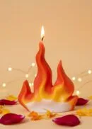 Behold the eternal flames—the ultimate tribute to our namesake, the divine flame. This candle is not merely shaped like a fire; it is an homage to Agni, the sacred element of purification, the witness to our holy rites, and the heart of our celebrations. Sculpted with dancing peaks of red, orange, and gold, it is designed to be the radiant centerpiece of your home, a powerful symbol of spiritual energy and divine presence.