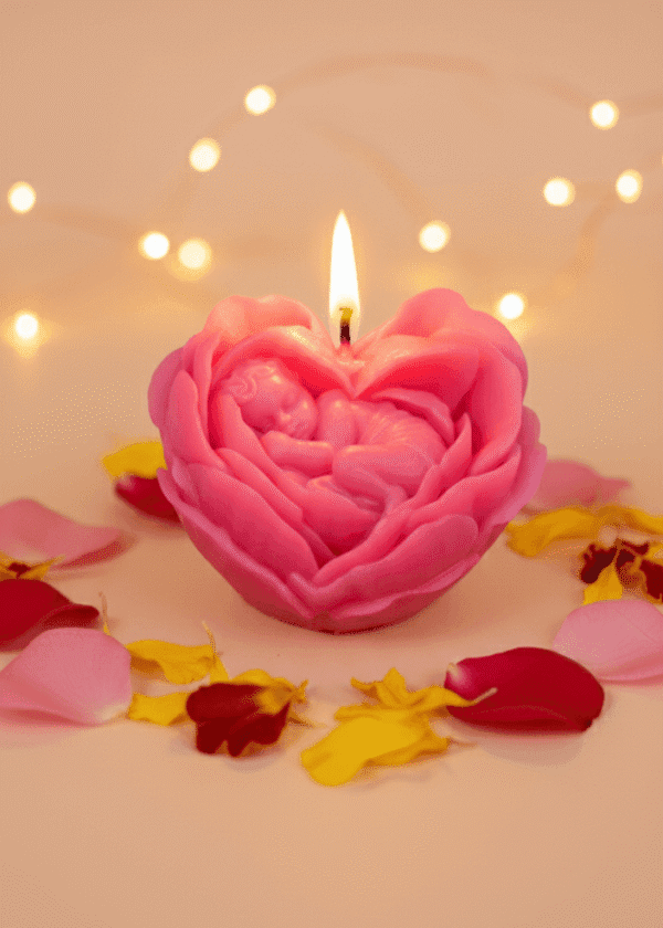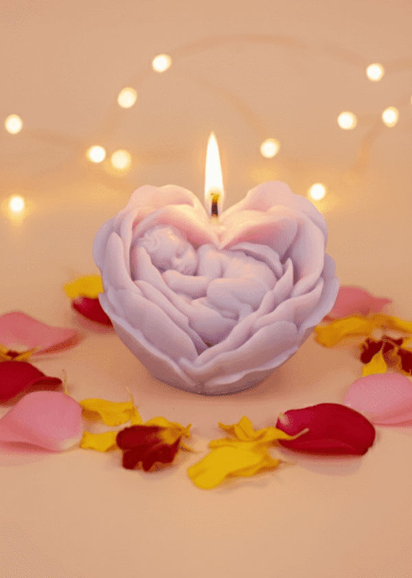 - Craftsmanship: This candle is a masterpiece of tender artistry. It features a seamless blend of two beautiful forms: the serene, sleeping baby at the center, and the gracefully unfurling floral petals that form a protective heart around it. Each detail is lovingly handcrafted by our artisans at Divine Flames™ to create a truly special and heartwarming keepsake.