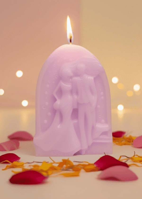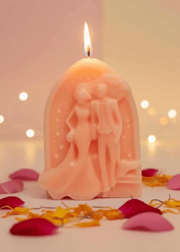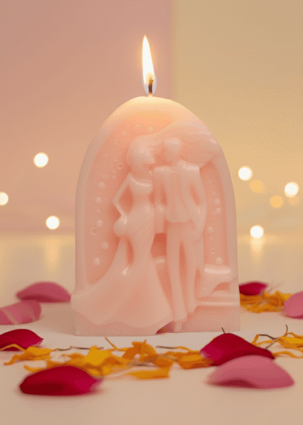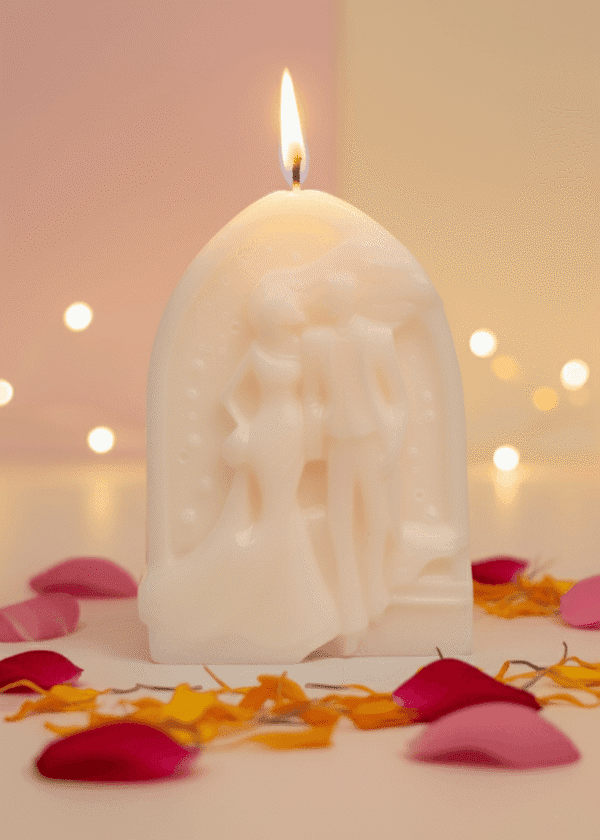 A tribute to the sacred journey of marriage and the profound promises that bind two souls, the Forever & Always candle captures a moment of pure bliss. This beautiful sculpture depicts a couple stepping through a majestic arch—a gateway (torana) into their new life together. It is a timeless symbol of the sacred vows (Sath Phere) and the shared adventure of a lifetime commitment, designed to cast a warm, romantic, and enduring glow.