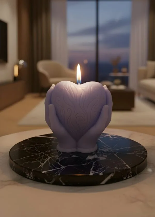 Where love finds its embrace. Our Heart in Hands Candle is a sculpted expression of affection, protection, and care. Featuring two hands gently cradling a heart, this elegant piece goes beyond décor — it symbolizes the warmth of giving and the beauty of love held close.