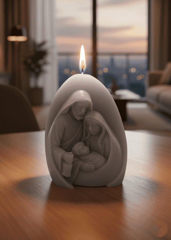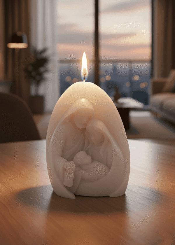 - Design: A perfect and spiritual centerpiece for your Christmas celebrations or home altar, the Holy Family Candle is a meaningful gift of faith, hope, and peace. It serves as a beautiful reminder of the true spirit of the season, transforming any personal sanctuary into a haven of warmth, love, and divine light.