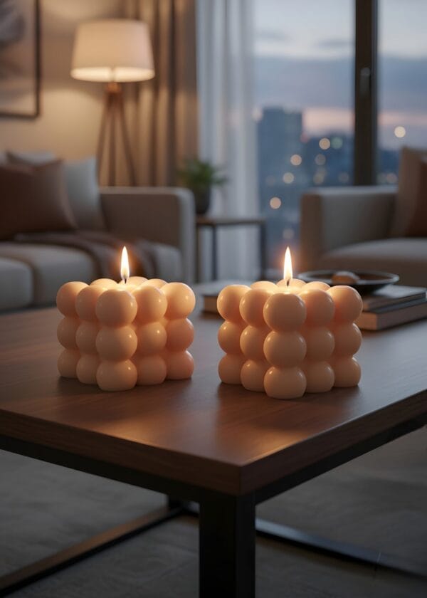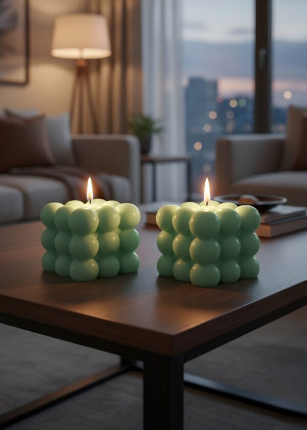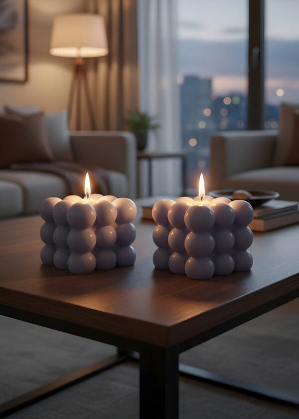- Craftsmanship: Features a unique and captivating composition of interconnected spheres, creating a visually stunning 3D bubble cube. Each candle is a minimalist sculpture, meticulously crafted to be a centerpiece of contemporary style.