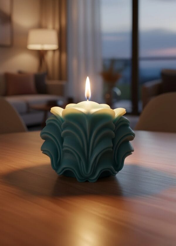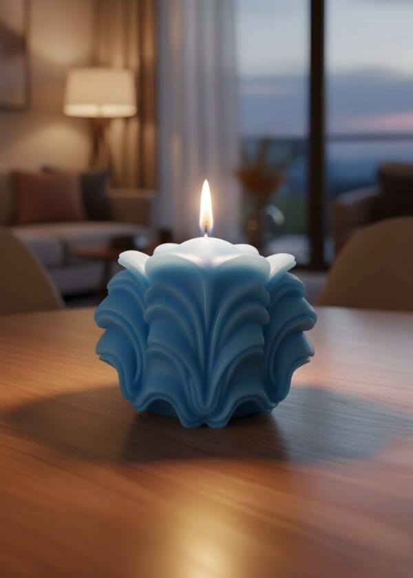 Sculpted from serene ocean-blue wax, the Sacred Conch Pillar pays homage to the Shankha, a timeless symbol of purity and divine sound in our heritage. This candle captures the sacred geometry of ocean shells and the gentle rhythm of the tides. Designed as an object of reverence and beauty, it fills your home with a profound calm as it casts its luminous, peaceful glow.