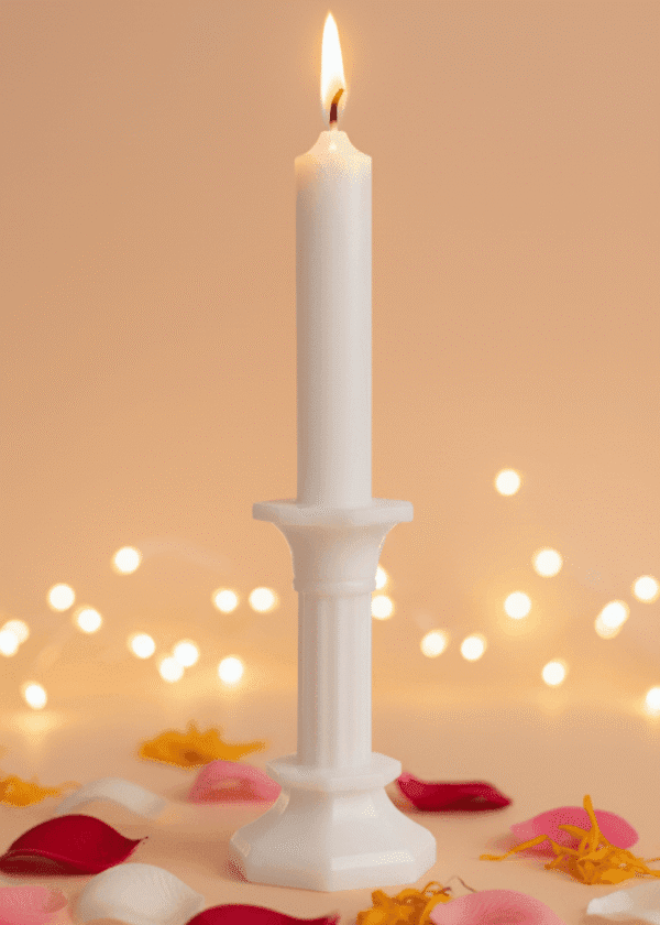 - Craftsmanship: This candle is a masterpiece of minimalist sculpture. The classic candlestick base, with its elegant column and stable footing, transitions seamlessly into the tall, smooth taper above. This unique, all-in-one design is meticulously handcrafted by our artisans at Divine Flames™, requiring immense skill to create its flawless, unified silhouette.