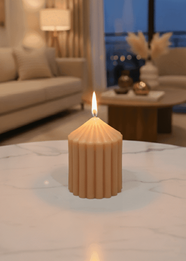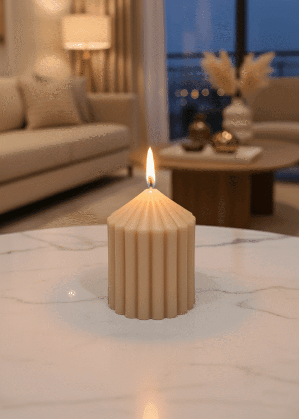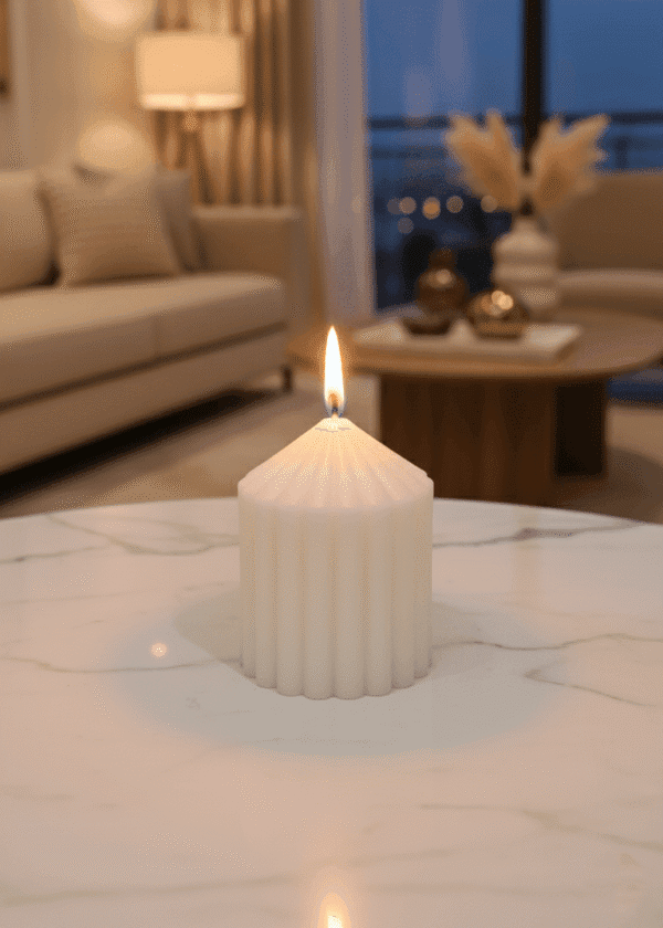 Inspired by the sacred architecture of our temples, the Pyramid Stripe Candle is a tribute to the holy Shikhara—the peak that reaches for the heavens. This candle’s form symbolizes the mythical Mount Meru, the cosmic axis of the universe and the ultimate destination of the soul’s ascent. Its balanced, geometric design is a modern monument to spiritual aspiration, designed to be a focal point for prayer and meditation as it casts its serene, upward glow.
