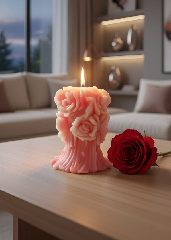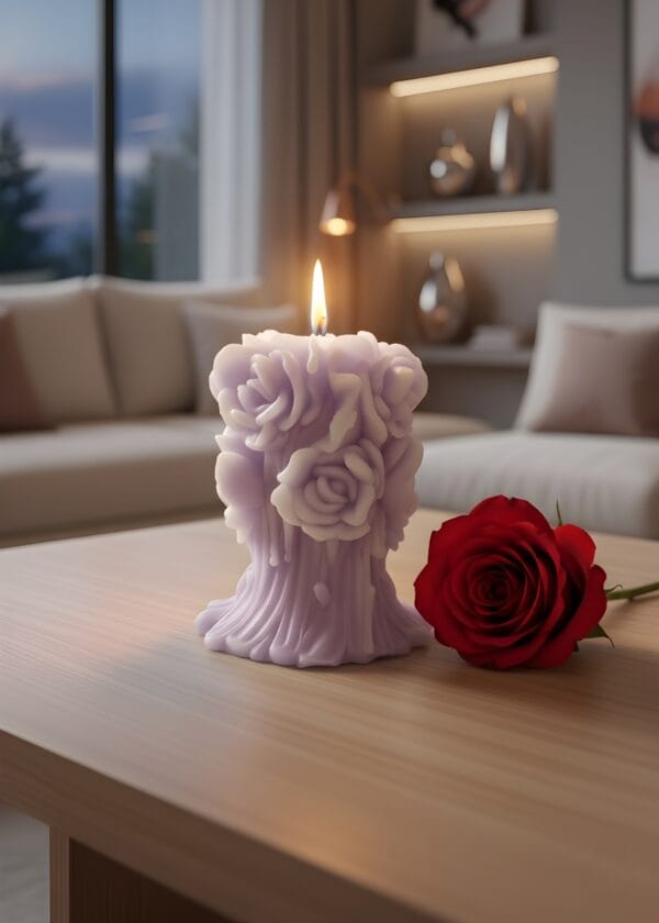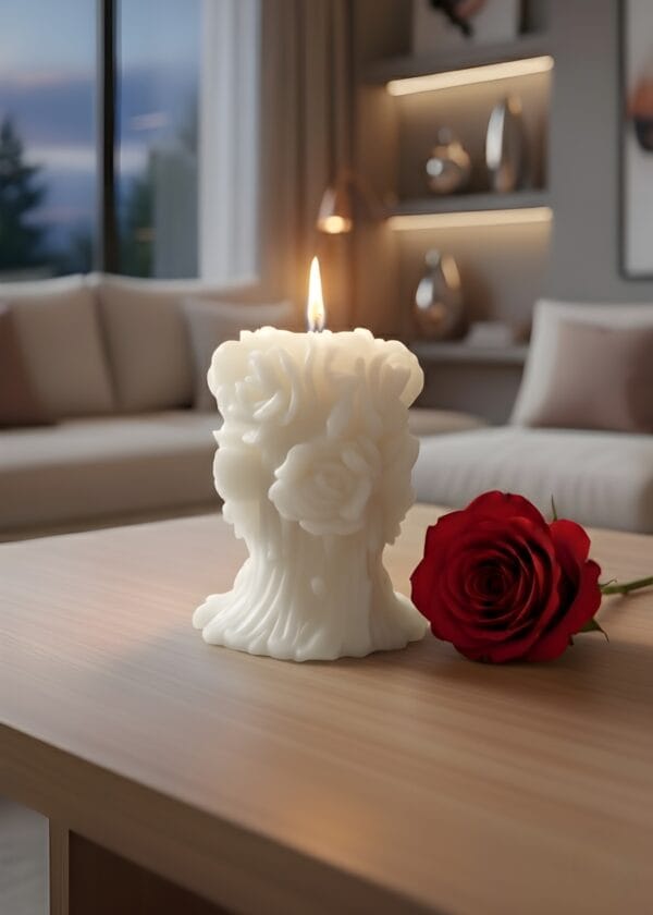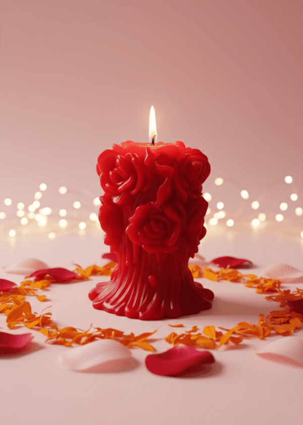 Inspired by the mythical wish-fulfilling trees (Kalpavriksha) of ancient lore, the Rosewood Charm candle is a tribute to divine love and nature’s boundless grace. Sculpted from pure, cream-white wax, this candle blossoms as a delicate rose tree, a timeless symbol of devotion and heartfelt wishes. It is designed to be a living sculpture in your home, bringing the serenity of a sacred garden to life as it casts its warm, romantic glow.