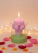 A breathtakingly realistic bouquet of soft pink tulips rises from a bed of vibrant green wax, perfectly evoking a lush garden on a fresh spring morning. Each tulip is sculpted with incredible detail, creating a captivating 3D floral display. Housed in a chic, clear glass jar, the candle’s artistry is showcased from every angle, making it a sophisticated statement piece for any room.