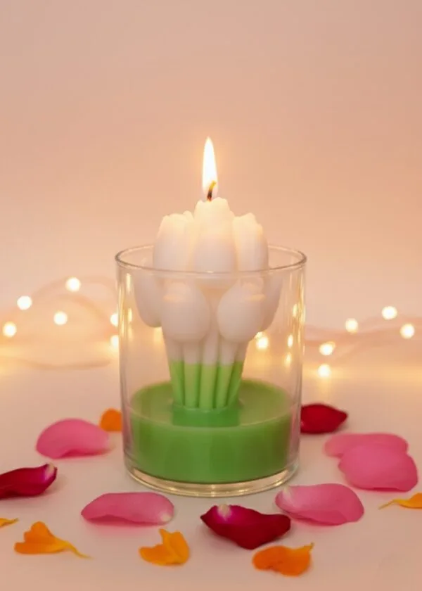 Capture the timeless beauty of a spring garden, forever in bloom. Our exquisite Tulip Bouquet Candle is more than just a source of light; it is a meticulously crafted piece of art designed to bring the fresh elegance of a floral arrangement into your home. This candle serves as a stunning decorative centerpiece, enchanting the eye and soothing the soul with its delicate charm.