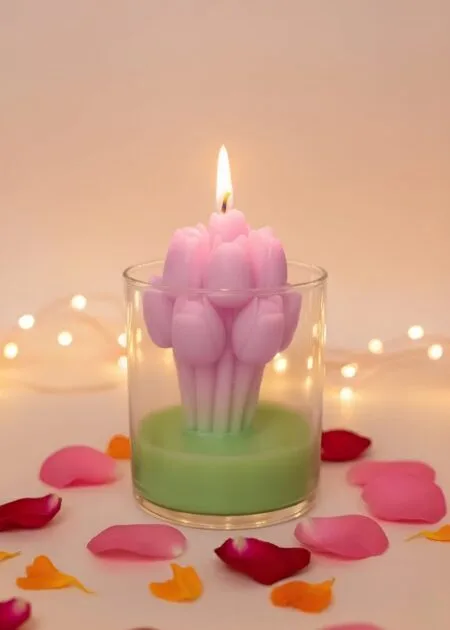 Capture the timeless beauty of a spring garden, forever in bloom. Our exquisite Tulip Bouquet Candle is more than just a source of light; it is a meticulously crafted piece of art designed to bring the fresh elegance of a floral arrangement into your home. This candle serves as a stunning decorative centerpiece, enchanting the eye and soothing the soul with its delicate charm.